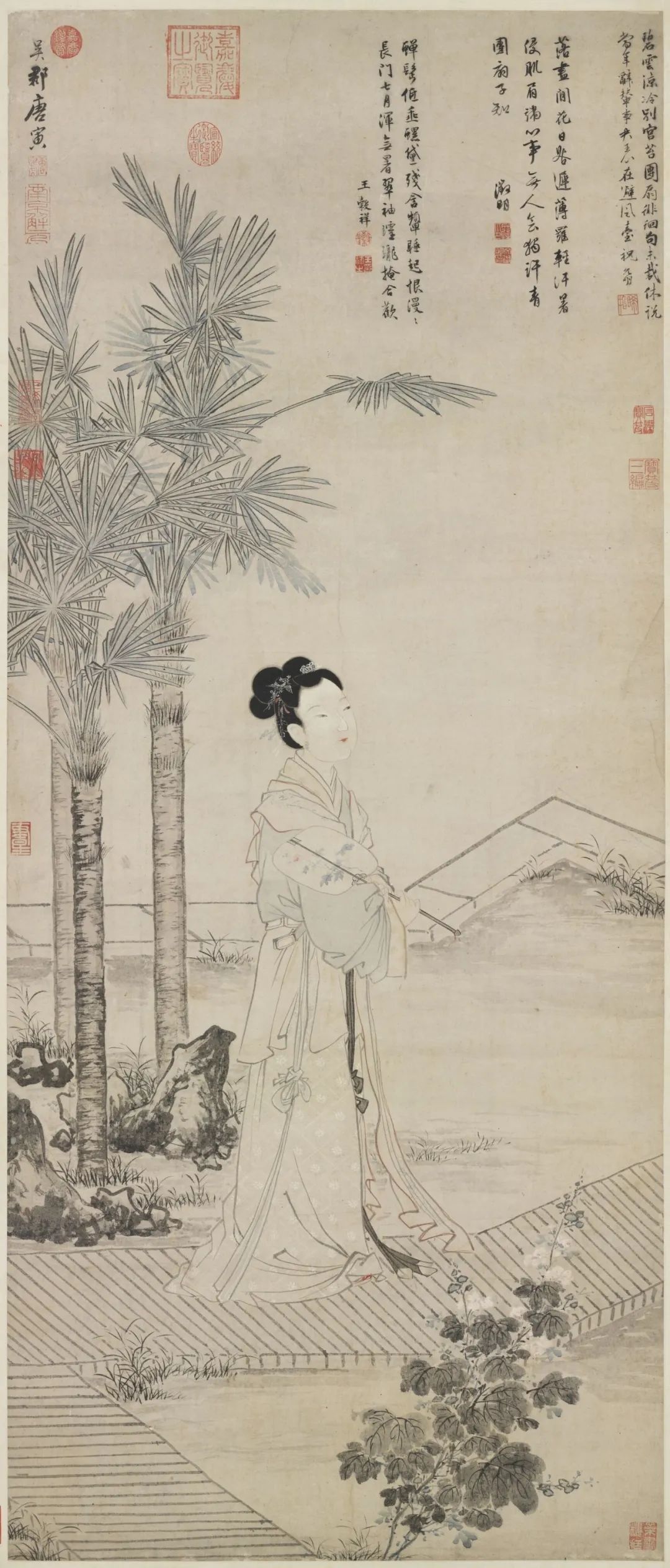 明 仇英 《班姬团扇图》 轴 纸本设色 150.4厘米 ×63.6厘米 台北故宫博物院